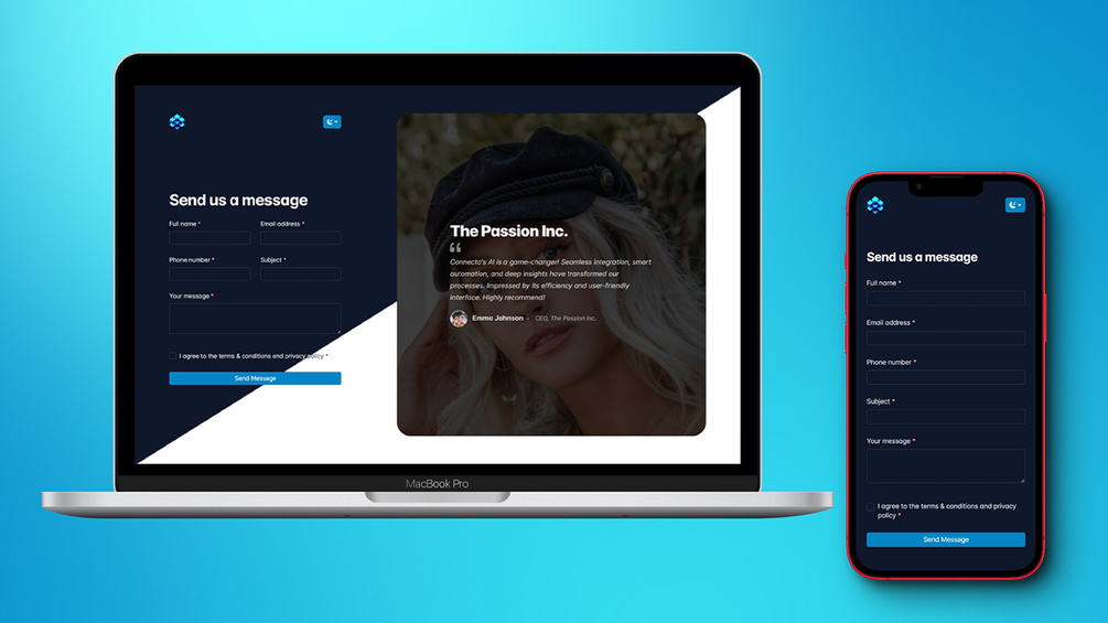 Crafted with both form and function in mind, Connecto boasts a PHP contact form submission feature, ensuring that your messages reach you reliably and securely. Its versatility shines through with light and dark themes, catering to diverse user preferences and various lighting environments. From desktops to mobile devices, its responsive design guarantees a seamless experience across the board.